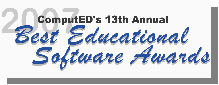 ComputED Learning Center, San Diego's leading computer education resource, is pleased to announce winners of its 13th Annual Best Educational Software Awards. The Awards target innovative and content-rich programs and websites which provide parents and teachers with the technology to foster educational excellence. Winners are selected from titles submitted by software publishers around the world (a list of last year's winners is available). The BESSIES have had the distinction of previously being co-sponsored by the CBS-affiliate in San Diego (KFMB-TV, Ch.8).